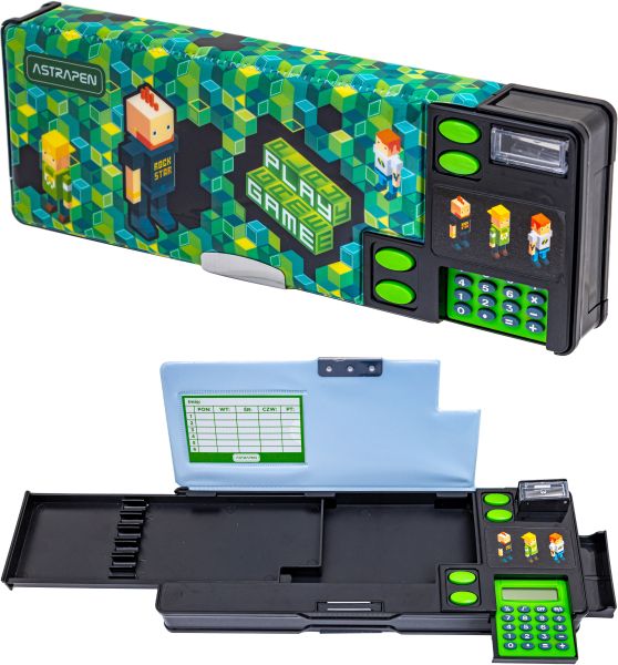 Piórnik z kalkulatorem ASTRAPEN PIXEL - GAME ON [opakowanie=6szt]Niezwykle nowoczesny piórnik ASTRAPEN od firmy Astra, który łączy styl z funkcjonalnością. Idealny do przechowywania wszystkich niezbędnych przyborów szkolnych, zapewniając doskonałą organizację i wygodę użytkowania.