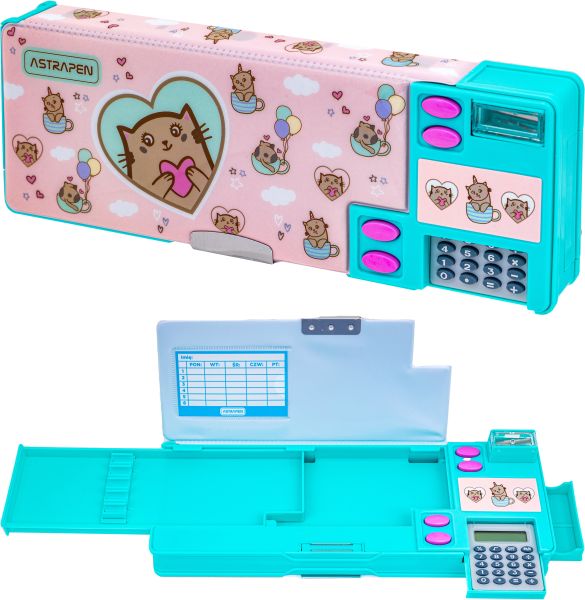 Piórnik z kalkulatorem ASTRAPEN KITTY OMBRE [opakowanie=6szt]Niezwykle nowoczesny piórnik ASTRAPEN od firmy Astra, który łączy styl z funkcjonalnością. Idealny do przechowywania wszystkich niezbędnych przyborów szkolnych, zapewniając doskonałą organizację i wygodę użytkowania.