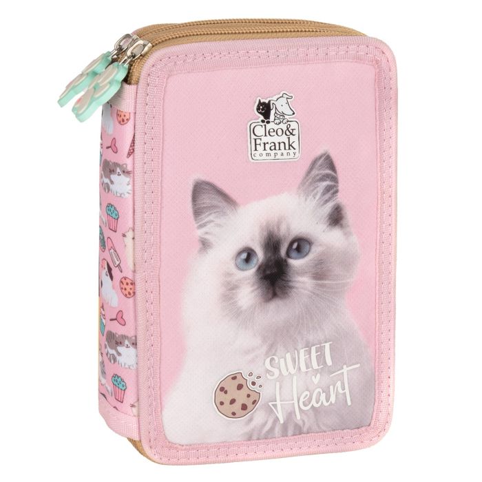PIÓRNIK Z WYPOSAŻENIEM JEDNOKOMOROWY CLEO I FRANK 44 Piórnik jednokomorowy z wyposażeniem, zapinany na zamek błyskawiczny zakończony ozdobnym suwakiem. Wewnątrz znajdują się dwie dodatkowe klapki. Piórnik posiada nadruk licencyjny nie tylko na zewnątrz, ale także wewnątrz oraz na wybranych elementach wyposażenia.... |