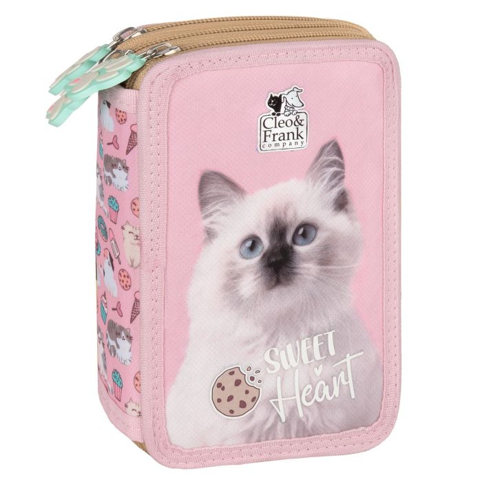 PIÓRNIK Z WYPOSAŻENIEM TRÓJKOMOROWY CLEO I FRANK 44 Piórnik trójkomorowy z wyposażeniem, zamykany na zamki błyskawiczne zakończone ozdobnymi suwakami. W skład wyposażenia wchodzą: gumka, temperówka, trzy długopisy, ołówek, linijka, plan lekcji, 18 pisaków, 18 kredek ołówkowych. Cześć elementów wyposażenia... |