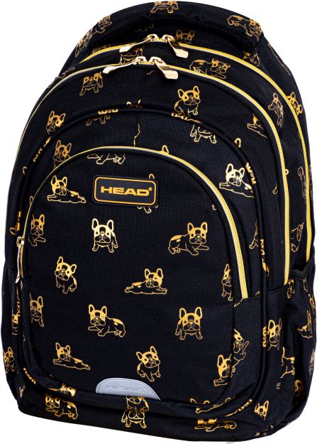 Plecak HEAD GOLDEN FRENCHIE, AB330 [opakowanie=6szt] • 3 komory, ZŁOTY ZADRUK ORAZ SUWAKI