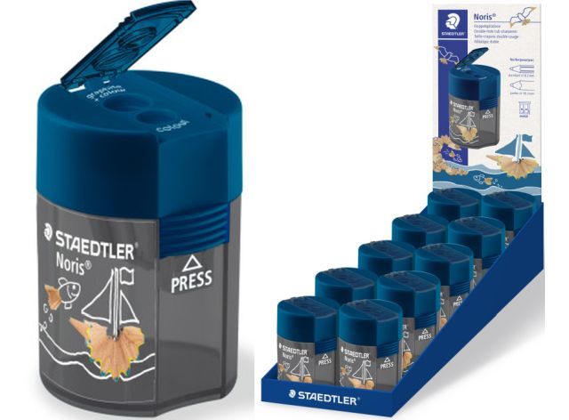 Podwójna temperówka, z pojemnikiem, Staedtler [opakowanie=10szt]✏️ Temperówka podwójna z pojemnikiem Staedtler Noris – precyzja i wygoda w jednym!