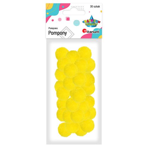 Pompony poliestrowe 25mm 30szt. żółte intensywne- miękkie i puszyste dekoracje w postaci pomponów - idealne do samodzielnego tworzenia postaci, zwierzątek, maskotek i innych kształtów - pompony można nawlekać na sznurki i druciki, bądź przyklejać do różnych powierzchni - świetne uzupełnienie technik... |