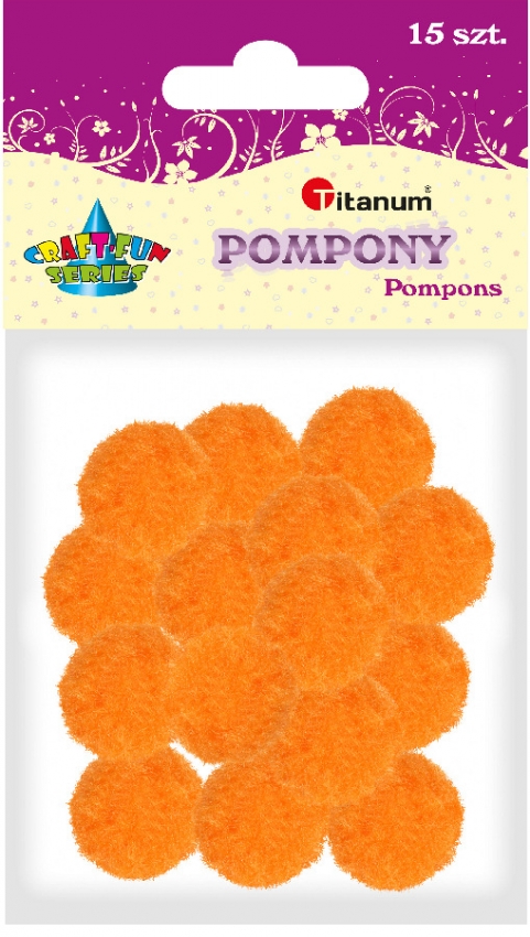 Pompony poliestrowe 18mm 15szt. pomarańczowe - miękkie i puszyste dekoracje w postaci pomponów