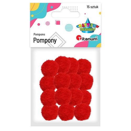 Pompony poliestrowe 18mm 15szt. czerwone Pompony poliestrowe, 18 mm. 15 szt. Czerwone. |
