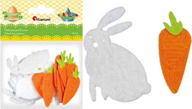 Dekoracje filcowe zające białe 48x52mm i marchewki 19x48mm 18szt. TITWLK |