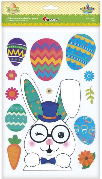 Dekoracje elektrostatyczne zając w cylindrze i okularach, pisanki, marchewka, kwiaty 13szt. TITWLKDekoracje bezklejowe, wielokrotnego użytku - można je zdjąć i przykleić ponownie do gładkich powierzchni takich jak szyby, lustra. Przed montażem powierzchnię, na której będzie dekoracja, należy zrosić wodą z kilkoma kroplami płynu do mycia naczyń,... |