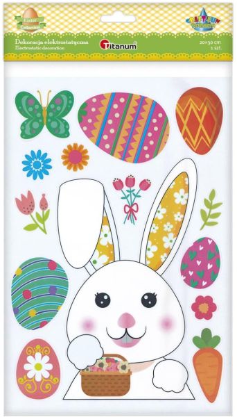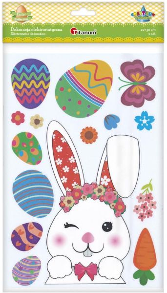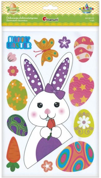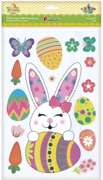 Dekoracje elektrostatyczne zając w wianuszku, pisanki, motyl, marchewka, kwiaty 15szt. TITWLKDekoracje bezklejowe, wielokrotnego użytku - można je zdjąć i przykleić ponownie do gładkich powierzchni takich jak szyby, lustra. Przed montażem powierzchnię, na której będzie dekoracja, należy zrosić wodą z kilkoma kroplami płynu do mycia naczyń,... |