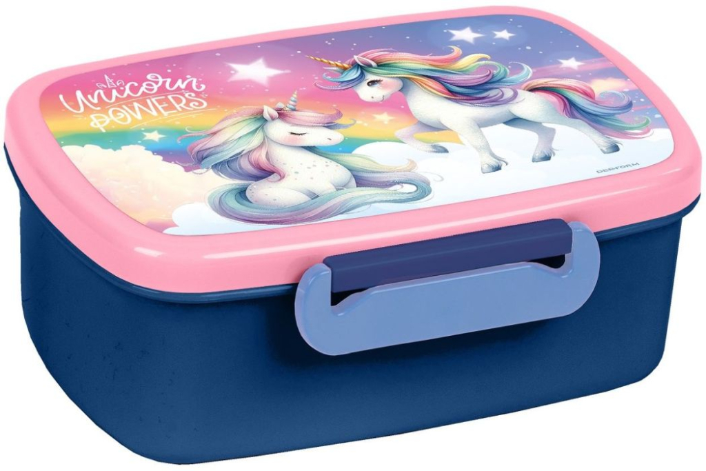 ŚNIADANIÓWKA JEDNOROŻEC 15 Pojemnik kanapkowy zamykany na jeden wygodny zatrzask. Wykonany z wysokiej jakości plastiku przeznaczonego do kontaktu z żywnością. |