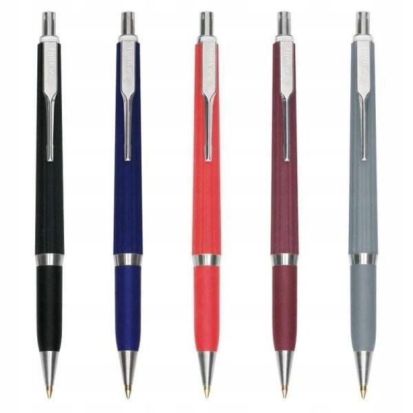 •korpus długopisu: część dolna - lśniące tworzywo sztuczne, górna część - tworzywo pokryte lakierem metalicznym