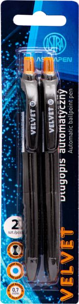 Długopis automatyczny z gumowym uchwytem 0, 7 mm ASTRAPEN Velvet - 2 szt. blister [opakowanie=18szt]• długopis automatyczny • grubość końcówki 0,7 mm • ergonomiczny gumowy uchwyt z wypustkami • kolor tuszu: niebieski • soft touch |