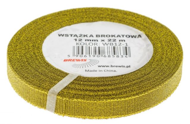 Wstążka brokatowa rozmiar: 12mm x 22 m kolor: złoty |