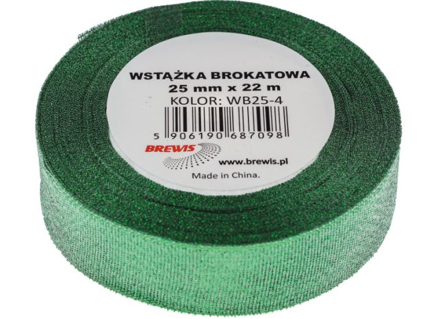 Wstążka brokatowa rozmiar: 25mm x 22 m kolor: zielony |