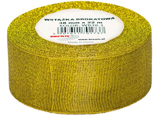 Wstążka brokatowa rozmiar: 38mm x 22 m kolor: złoty |