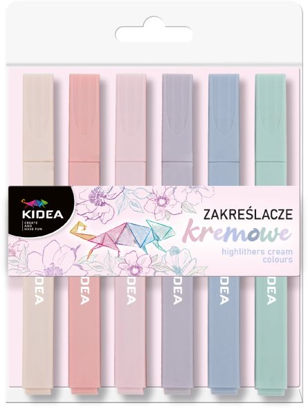 ZAKREŚLACZE KREMOWE 6 KOLORÓW KIDEA Zakreślacze w 6 stonowanych, kremowych kolorach: zielonym, niebieskim, błękitnym, fioletowym, różowym i brzoskwiniowym. Ścięty kształt końcówki pozwala zarówno na podkreślanie ważnego tekstu, jak i wykonanie bardziej precyzyjnych detali i notatek. Niezwykle... |