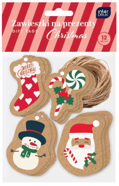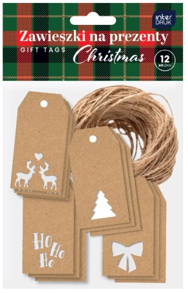 Zawieszki na prez.kraft kształ.CHRISTMAS [opakowanie=5szt] Zawieszki na prezenty wykonane z papieru kraft z pięknymi świątecznymi motywami. Każda z zawieszek posiada sznurek, dzięki któremu z łatwością przyczepisz je do każdego upominku. 12 szt. w opakowaniu (4 wzory po 3 sztuki). |