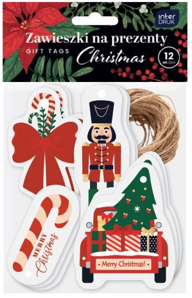 Zawieszki na prez.kształty CHRISTMAS [opakowanie=5szt] Zawieszki na prezenty z pięknymi świątecznymi motywami. Każda z zawieszek posiada sznurek, dzięki któremu z łatwością przyczepisz je do każdego upominku. 12 szt. w opakowaniu (4 wzory po 3 sztuki). |