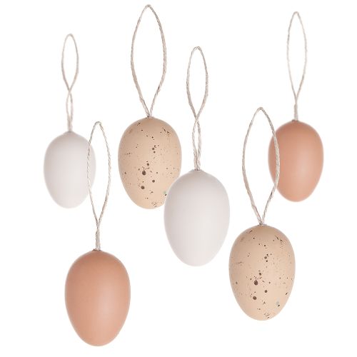 ZAWIESZKI JAJKA, 6 SZT. NATURAL [opakowanie=2szt]Wykonane z nietłukącego się materiału jajka ze sznureczkiem do zawieszenia. Dzięki wysokiemu standardowi wykonania prezentują się bardzo naturalnie i idealnie wpisują się w styl eko. Mogą stanowić samodzielną ozdobę lub element wielkanocnej kompozycji.