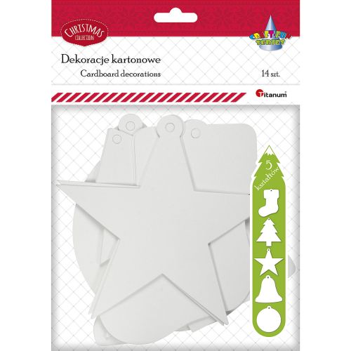 Zawieszki tekturowe z dziurką do wykończenia: skarpeta 123x165mm, choinka 146x165mm, gwiazdka 168x153mm, dzwonek 16x163mm, bombka 15mm 14szt. - kartonowe zawieszki do wykończenia dowolną techniką