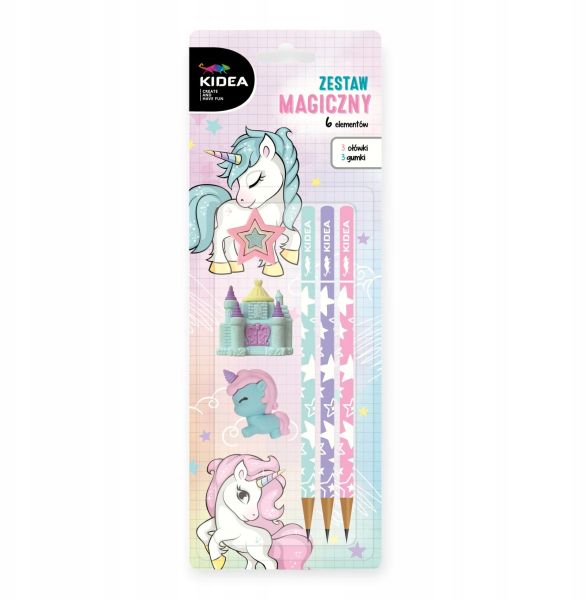 ZESTAW 3 OŁÓWKI + 3 GUMKI MAGIC KIDEA |