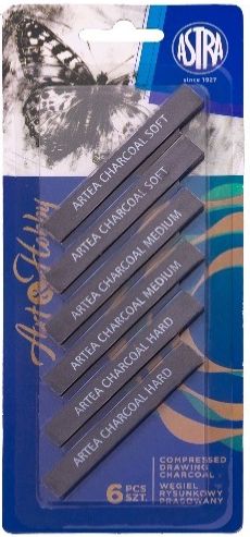 Zestaw węgli prasowanych ARTEA 12 sztuk, 4 medium, 4 soft, 4 hard - czarny [opakowanie=12szt]• kwadratowy przekrój - 1 x 1 x 8 cm