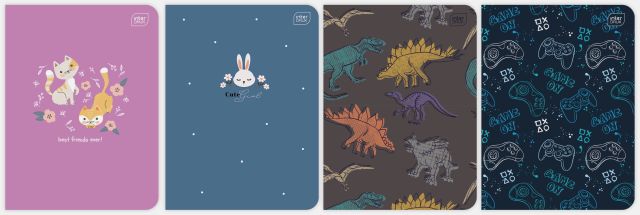 Zeszyt A5 16 kol3= 70g UV Boys Mix [opakowanie=20szt] Format: A5. Liczba kartek: 16. Zadruk w kolorową trzylinię. Zaokrąglone rogi. Okładka pokryta lakierem UV. Ściąga z podstaw ortografii na odwrocie zeszytu. |