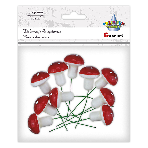 Muchomory styropianowe 30x35mm na druciku 50mm 10szt. |