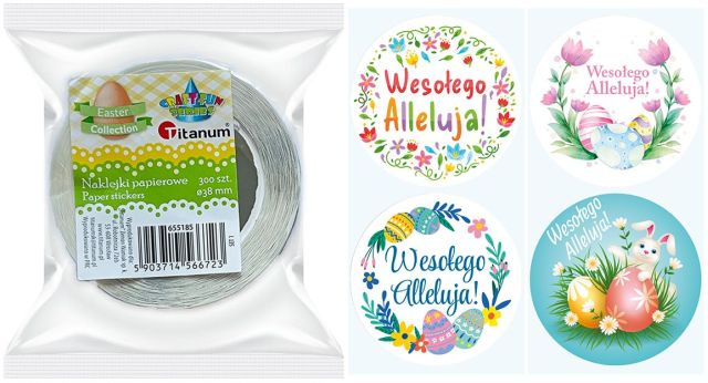 Naklejki papierowe na taśmie 4 wzory Wielkanoc O38mm 300szt. TITWLK26 |
