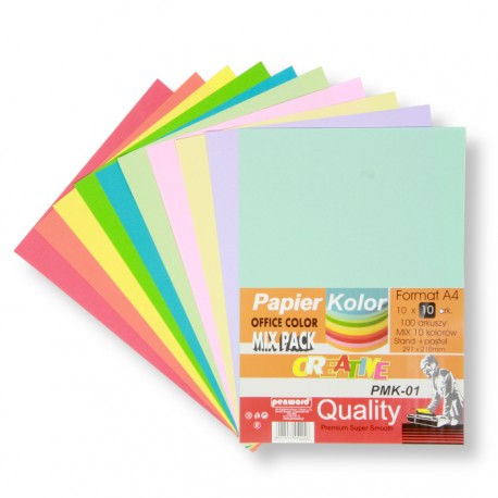 PAPIER OFFICE COLOR A4/100 STANDARD + PASTEL 10 KOLORÓW PMK-01Papier mix kolor: