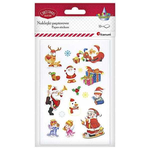 Naklejki papierowe 10 plansz Mikołaje, aniołki, prezenty 12 wzorów - 120szt. |