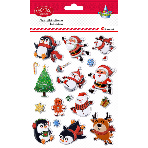 Naklejki wypukłe Mikołaje, bałwanki, Ciastek, pingwiny, choinka 17szt. |