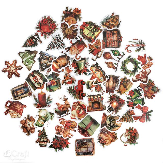NAKLEJKI WINYLOWE - ŚWIĄTECZNE 4-6 CM, 50 SZT. - VINTAGE [opakowanie=6szt]Winylowe naklejki z vintage motywami świątecznymi w klasycznym kolorze czerwonym i zielonym, wielkośc 4-6 cm, w zestawie 50 sztuk