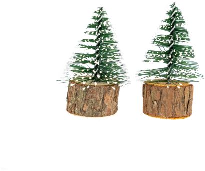 Choinki z tworzywa CHP-5 na drew. podstawce, przypruszone śniegiem, rozm. 5cm, op. 2szt. |