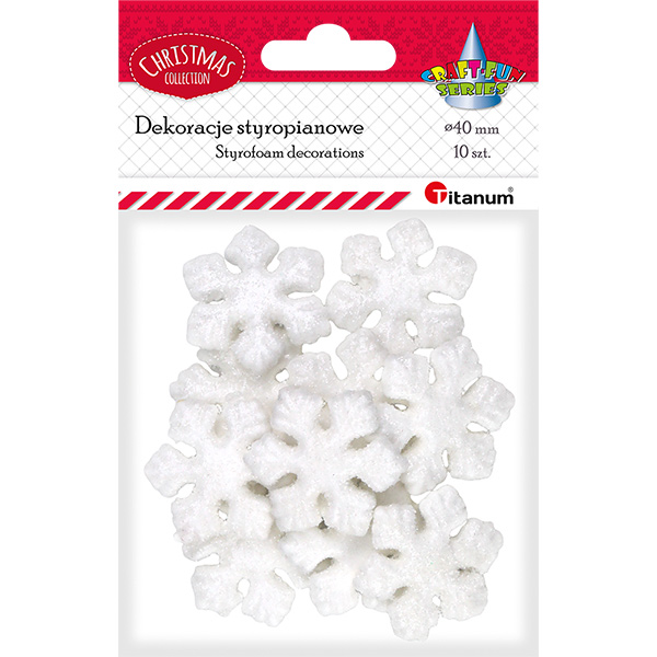 Styropianowe płatki śniegu O40mm brokatowe białe 15szt. |
