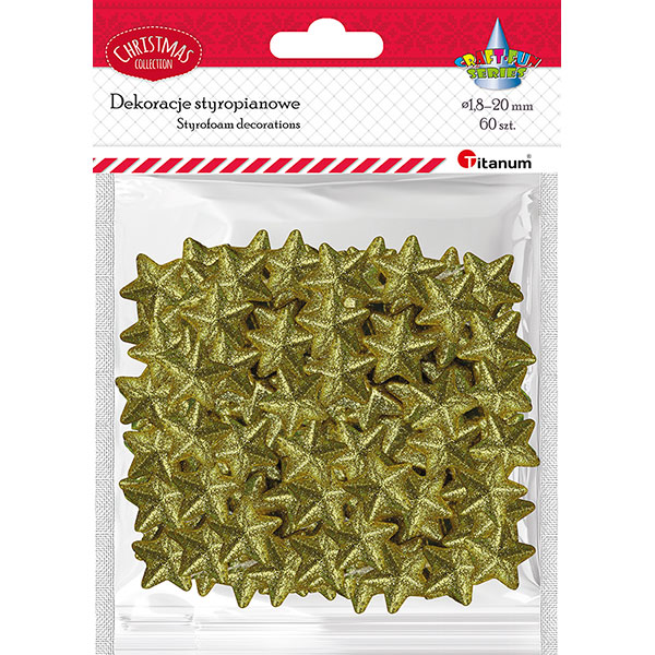Styropianowe gwiazdki 20x18mm grubość 10mm brokatowe złote 60szt. |
