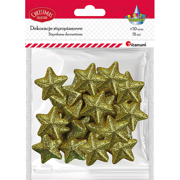 Styropianowe gwiazdki 30x28mm grubość 10mm brokatowe złote 18szt. |