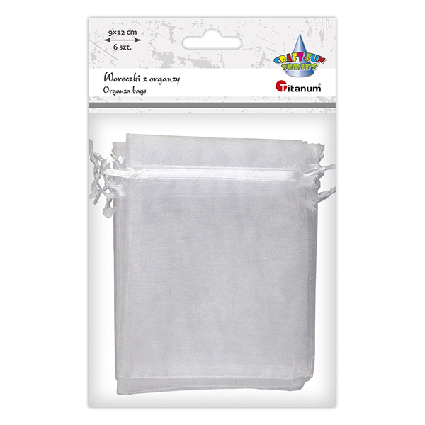 Woreczki z organzy - sakiewki 9x13cm białe 6szt. wysokość do ściągacza 9, 5cm |