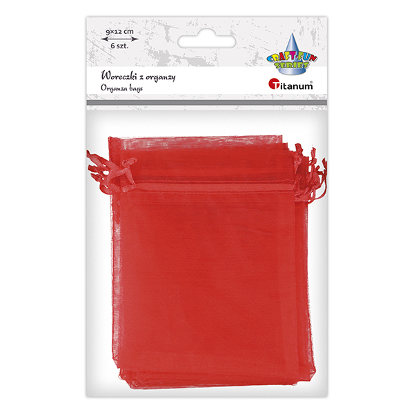 Woreczki z organzy - sakiewki 9x13cm czerwone 6szt. wysokość do ściągacza 9, 5cm |