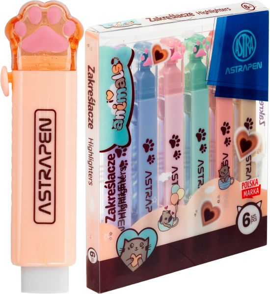 Zakreślacze z łapkami ASTRAPEN ANIMALS CHOCO - 6 kolorów |