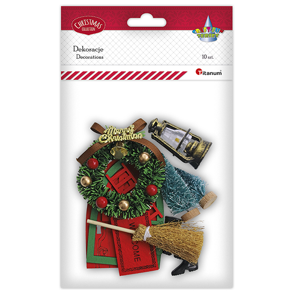 Drewniana dekoracja wejście dla Elfów 15 elementów drzwi 66x100mm, miotła 100mm, drabina 20x60mm, okno 31x46mm, wycieraczka 35x54mm, wianek 75mm, choi |
