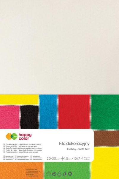 Filc dekoracyjny, 20x30 cm, 1, 5 mm, 10 ark., biały mleczny, Happy Color🤍 Filc dekoracyjny biały mleczny 20x30 cm, 1,5 mm – miękki materiał do kreatywnych projektów!