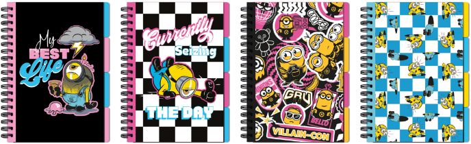 KOŁOZESZYT B5/96k. Kratka z mikroperforacją oraz kieszonką na notatki / MINIONKI |