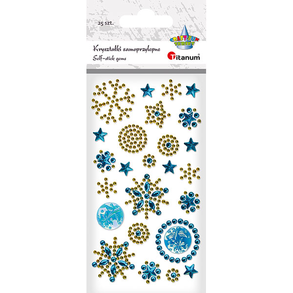 Kryształki samoprzylepne płatki śniegu, gwiazdki, okręgi turkusowo-złote 25szt. |