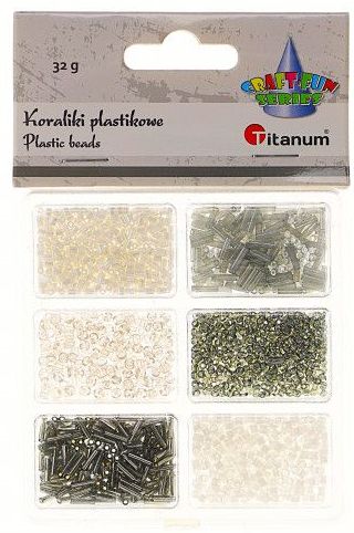 Koraliki plastikowe mix 6 rozmiarów 32g tonacja biało-szara |